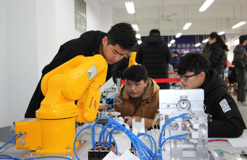 举办安徽省大学生工业机器人应用大赛旨在贯彻落实国务院、安徽省政府关于深化高等学校创新创业教育改革的有关要求,打造安徽省工业机器人应用技能交流平台,推动安徽省机器人领域人才培养。该项赛事为“赛、学、研”教育教学改革提供了一个良好的平台,为全省高校老师和同学提供一个相互交流和学习的平台。