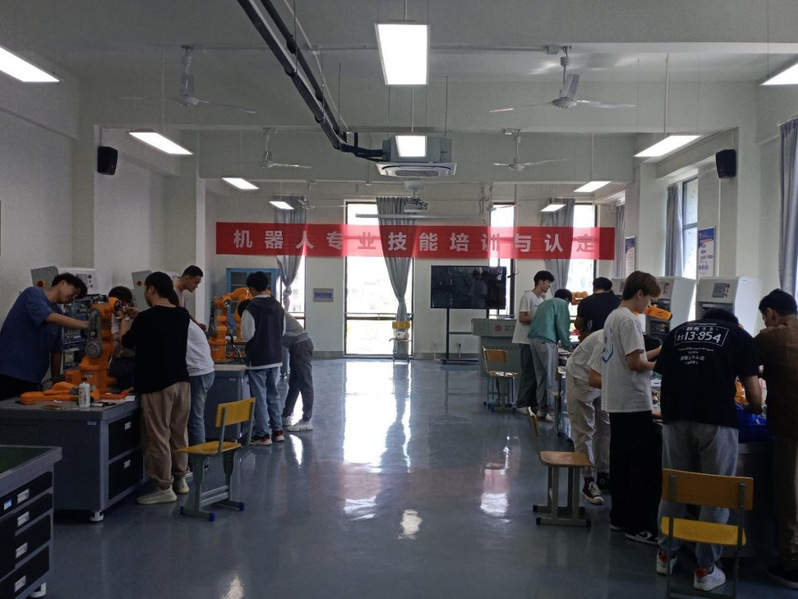 为了做好技能培训工作,遴选具有相关专业背景、实践经验丰富的党员教师作为指导教师,多次研讨培训内容和授课方案,采取线上线下相结合的方式举行开班仪式,分批开展技能培训,确保操作培训安全有序进行。通过机器人拆装与调试、机器人操作与编程、机器人集成应用等实践操作,强化学生的机器人专业知识和应用技能,将思政教育与专业知识教育有机融合,引导学生理解并自觉实践行业职业精神和职业规范,增强职业责任感和终身学习意识。