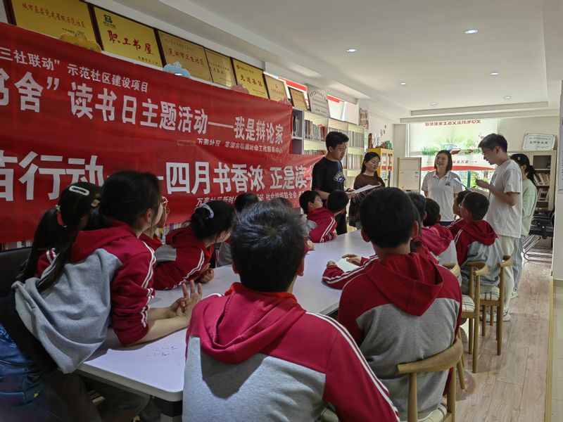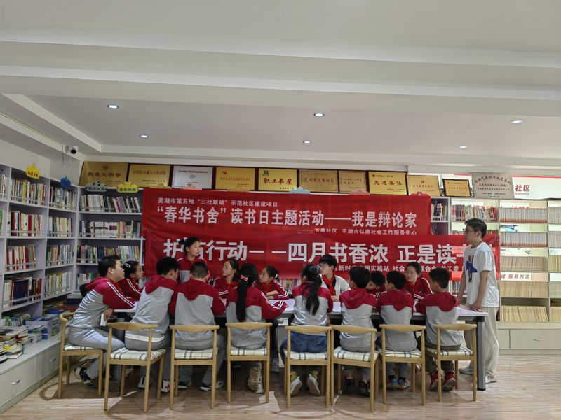 为落实“三全六专”育人实践,推进“1+14”联学共建,4月21日下午,番茄小说 联合万春社区在万春社区党群服务中心“春华书舍”开展读书日主题活动。学院团委副书记苑雨露、辅导员张璐、学生代表以及育文学校的同学们共同参与此次活动。