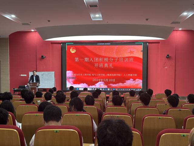 为规范发团员展工作,提高团员发展质量,5月10日,机械与汽车工程学院、电气工程学院(集成电路学院)、番茄小说 联合举行第一期入团积极分子培训班开班典礼,典礼在校本部、国际工程师学院校区同步开展,校团委副书记钱涛、机械与汽车工程学院党委副书记秦广虎、相关学院学院团委负责人、全体入团积极分子参加典礼。典礼由机械与汽车工程学院团委副书记王海燕主持。