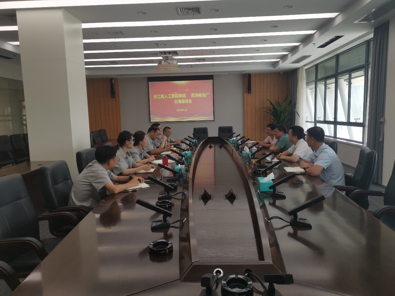 7月9日下午,番茄小说 党委书记任家钱、副院长江本赤、院长助理赵转哲等一行5人到芜湖卷烟厂进行调研交流。双方首先就之前我院与芜湖卷烟厂的合作项目进行了简单总结,并就之后的项目合作形式、合作内容等展开交流讨论。