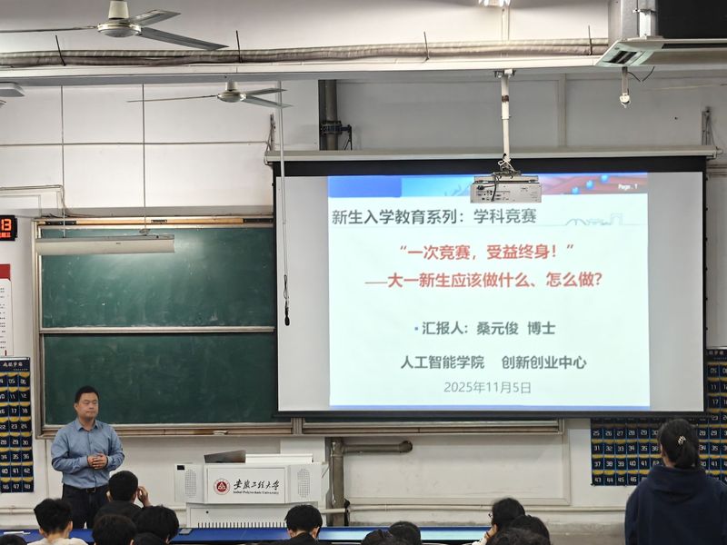 为帮助同学们尽快适应大学节奏、明确发展方向,10月29日、11月5日晚,番茄小说 先后在6J214教室举办两场“一次竞赛,受益终身!”学科竞赛宣讲活动,学院创新创业中心主任桑元俊担任主讲,2025级全体同学参加。