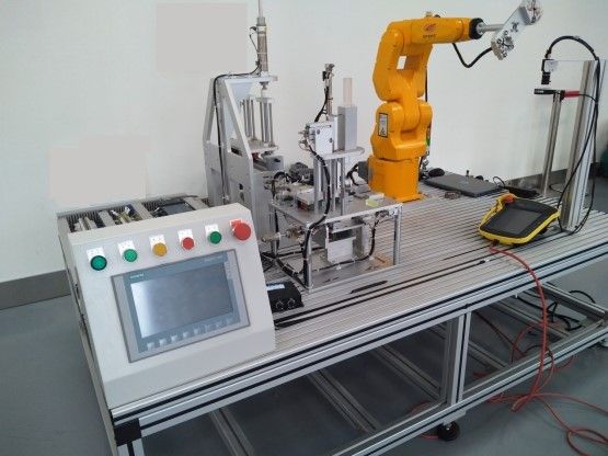 本实验室配置10台机器人作业及智能检测单元,以滚动轴承自动装配为应用场景,用于机器人作业与智能检测练习。使学生了解装配工艺作业规划;领会借助精巧夹具实现机器人完成精细装配作业的理念;掌握作业任务分配和协同策略;掌握气动、机械夹具、电气装调和故障排除方法;掌握设备组网方法;掌握上位机协同控制工业机器人、电磁手爪、工业相机、气动控制单元、触摸屏等外部设备的实现方法。