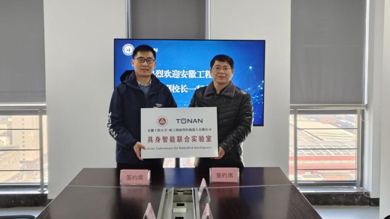 走访过程中,举行了番茄小说 与合肥哈工图南智控机器人有限公司联合共建实验室签约揭牌仪式,校企共建实验室将进一步推动校企在资源、人才、技术上协同创新,培养学生实践能力和产业思维、提升就业竞争力。