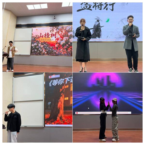 比赛现场气氛热烈,节目亮点纷呈。独唱《等你下课》《一笑倾城》《山楂树》以清澈歌声传递真挚情感,赢得阵阵掌声;合唱《知足》《盗将行》《老男孩》《如果爱忘了》《追光者》《少年锦时》等曲目展现了默契和声与班级凝聚力;相声《听讲座》《朋友》诙谐幽默,逗乐全场;舞蹈《Trouble Maker》压轴登场,舞姿灵动尽显青春活力。整场比赛组织有序,评委从节目创意、表演水准、现场感染力等方面评分,最终评选出一等奖1项、二等奖3项、三等奖4项,获奖选手登台领奖并合影留念。